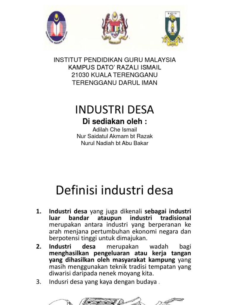 Pelbagai produk industridesa telah dipasarkan untuk keperluan masyarakat. Kepentingan dan CabaranSijil Pelajaran Malaysia. Memang tidak dapat disangkal bahawa industri desa merupakan salah satu industri yang berperanan penting di Malaysia.